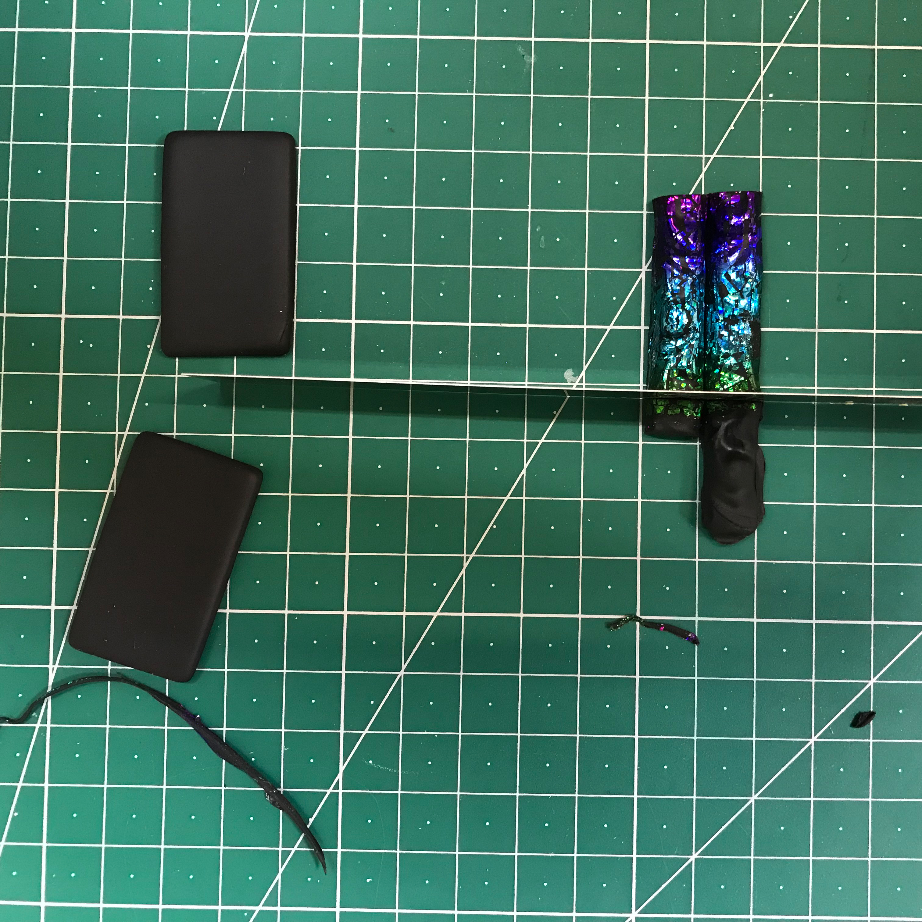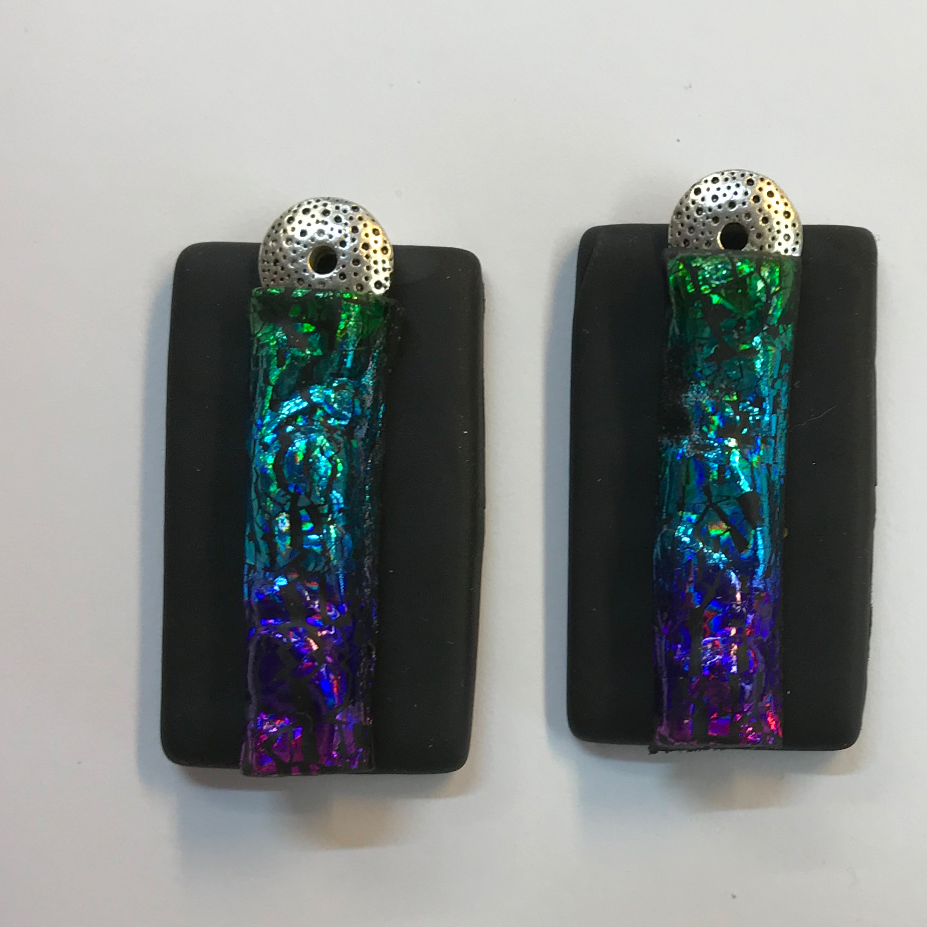 That’s excactly what you can do with these earrings. And it is also a perfect last minute gift. Doesn’t need a lot of time. Just unpack your Makin’s No bake clay and run it through the Makin’s ULTIMATE CLAY MACHINE® to get an even thickness (on the widest setting) and use the largest from the Makin’s Cutter Sets Rectangle. If you use some cling wrap you get a nice beveled edge. Prepare your pieces and just stack them, no glue needed if you are working with fresh clay. Next I let it dry on my table and the next day I did connect everything together.