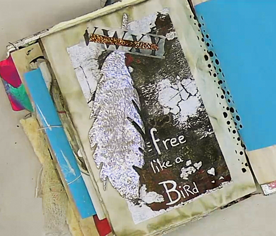 After the studio tour I have a little sequence about our backyard while it is snowing and then comes a quick time lapse for an Art Journal page in one of my smaller handmade journals. Again I’m using some trash for the feather. So check out the video and if you have any questions, leave them in the comments. Either over at Youtube or here on this post.