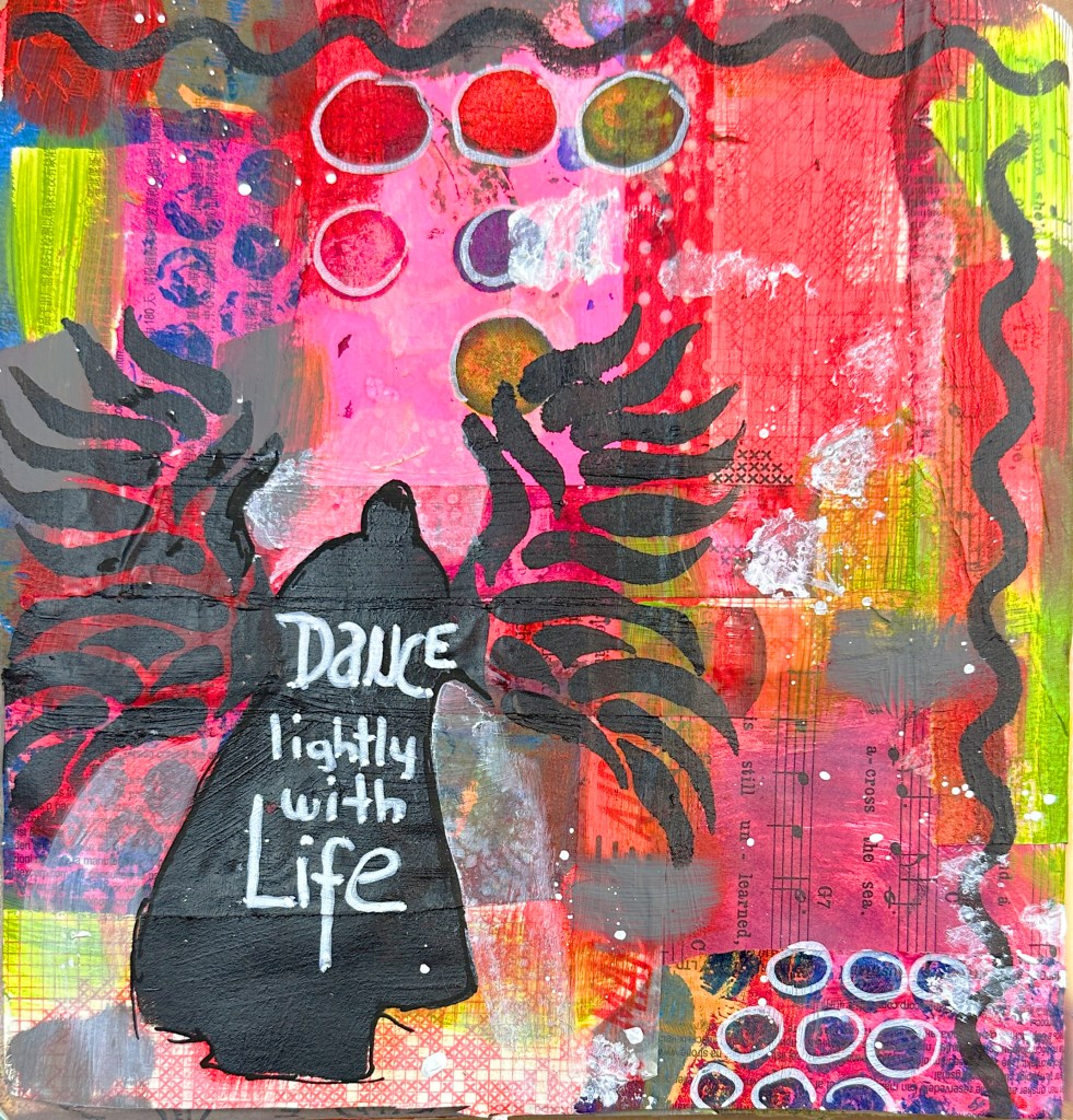 Welcome to this art journal tutorial inspired by the vibrant colors of our mood board from the Artsy Trio featuring red and pink hues. Follow along as I create a captivating background using collage papers and paint. I’ll then incorporate a striking black figure with wings using stencils available in my shop.