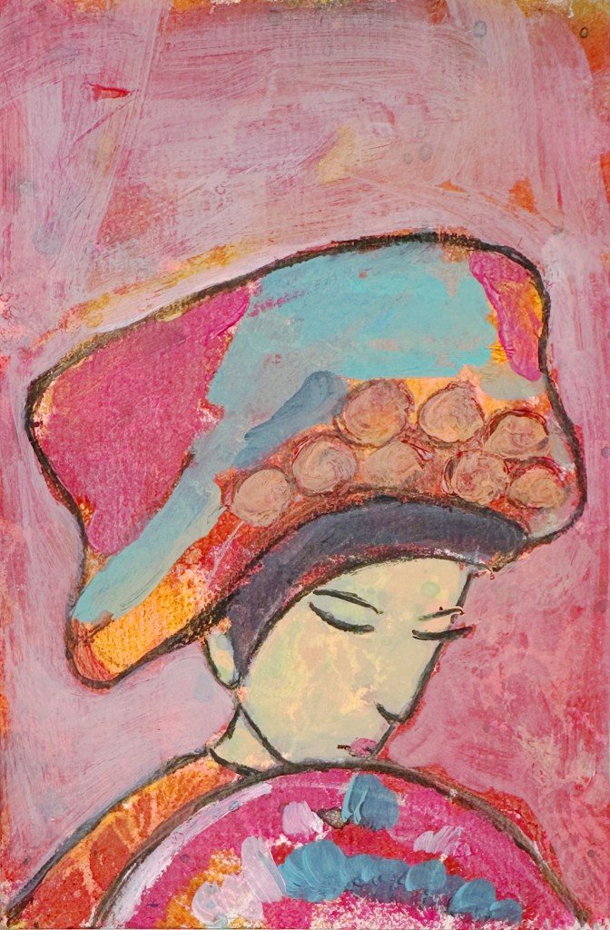 For this round, I had the pleasure of working on a background provided by Eleni. The vibrant and dynamic colors she used perfectly complemented my chosen inspiration: Alexej von Jawlensky’s “Girl with a Flowered Hat.” Jawlensky’s work is renowned for its expressive use of color and form, and I was excited to bring a piece of that energy into our collaborative project.