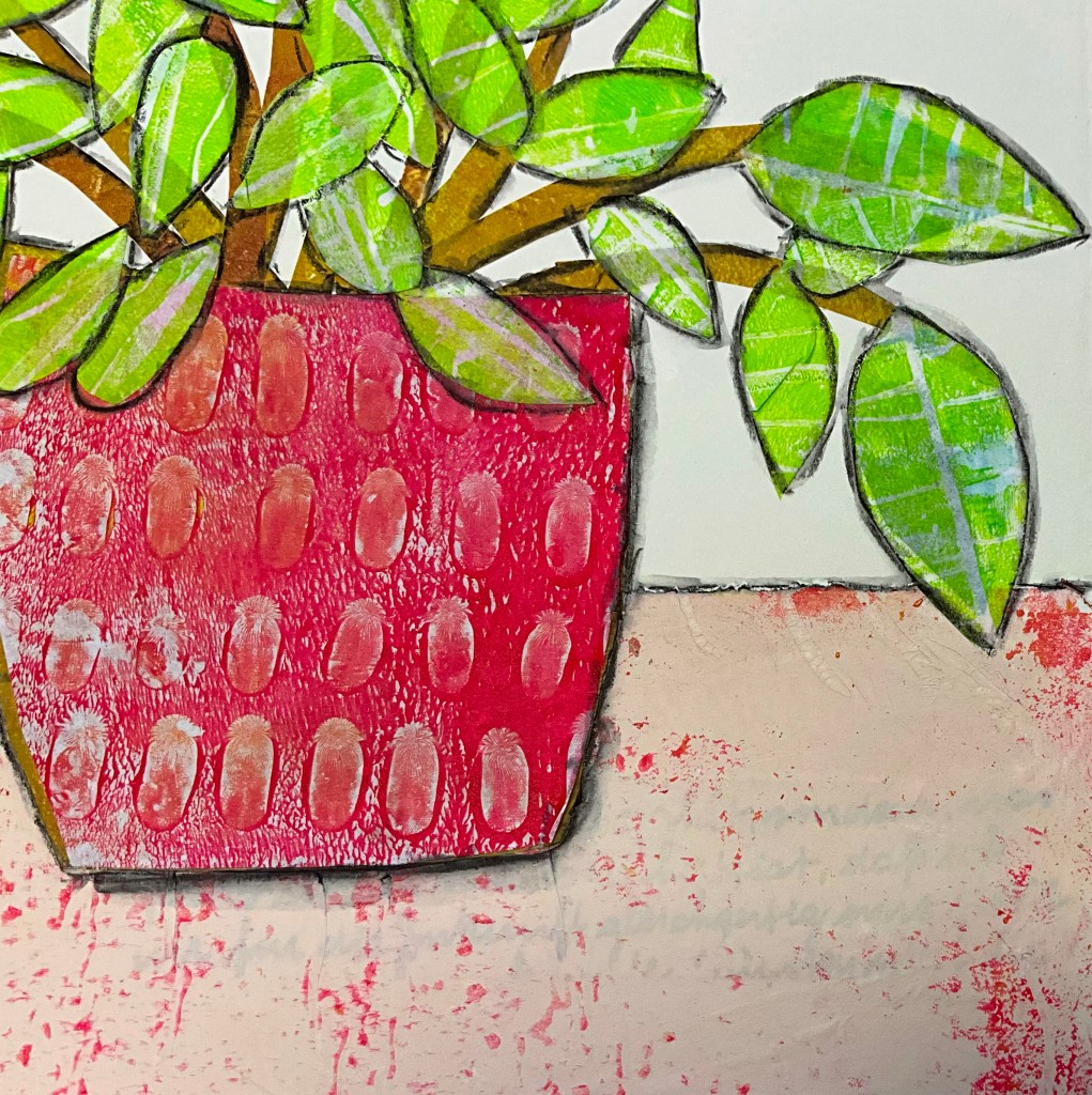 - Layering Elements – Using a piece of my prints, I formed the pot and plant composition.