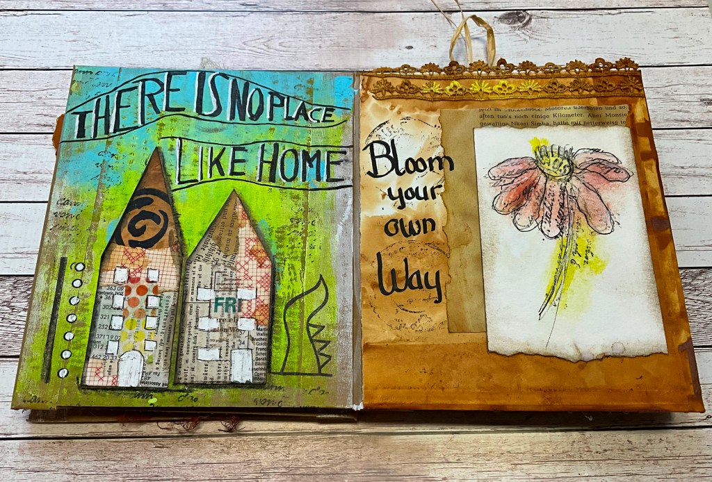 This is a hands-on workshop open to all skill levels. Whether you’re a beginner or an experienced creative, you’ll find inspiration. You will also discover new techniques to take home. We won’t fill every page. We’ll have the freedom to choose from my sample ideas. You can experiment with what excites you most!