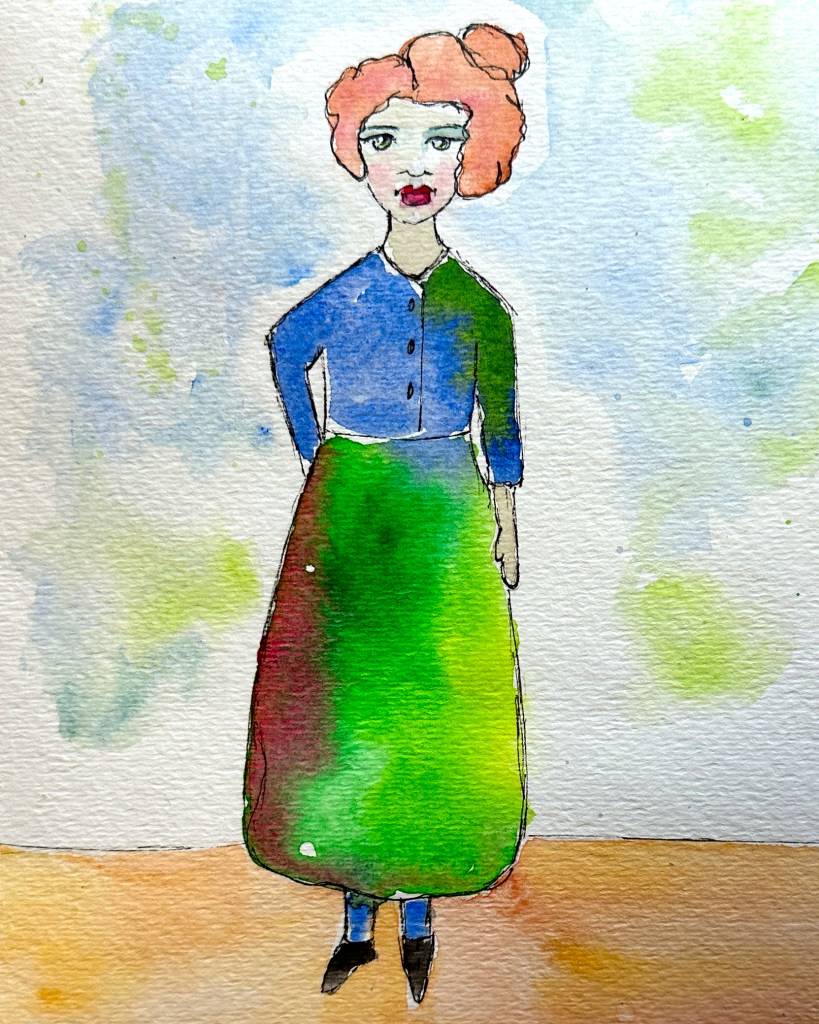 For this piece, I used a mix of Jane Davenport watercolors and Schmincke Horadam watercolors. I love how these two brands blend. Jane Davenport’s colors are vibrant and playful. Schmincke Horadam watercolors offer deep, rich tones that add contrast and nuance.