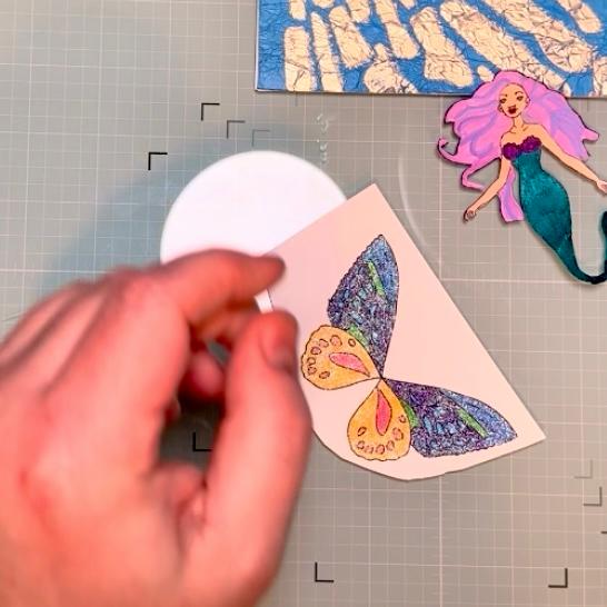 Framing the card is a beautifully stenciled border in purple and teal, full of shimmer and shine. This frame not only draws the eye to the center but enhances the sense of underwater magic.