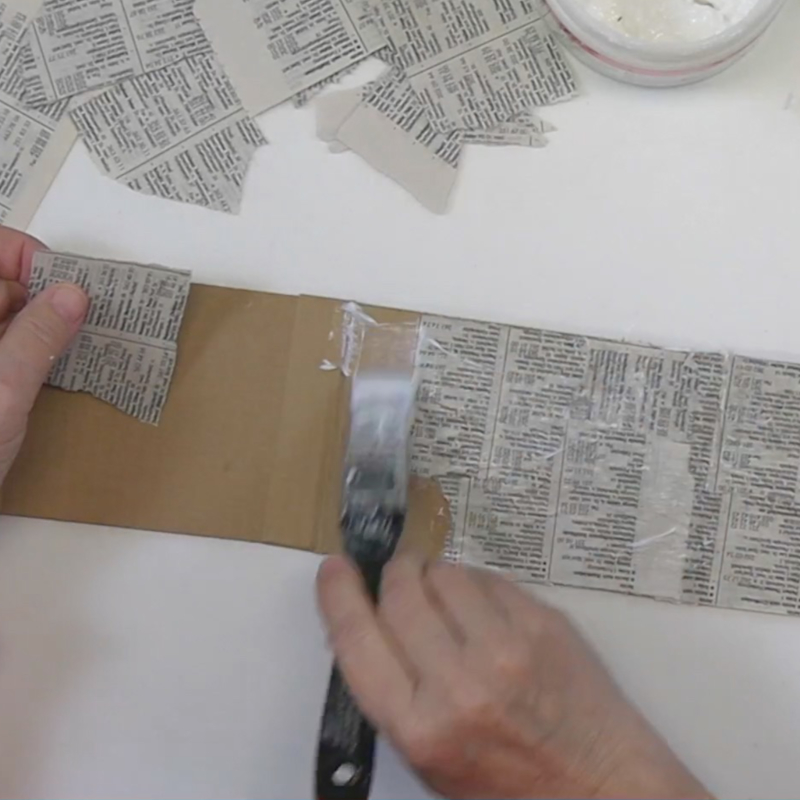 Handmade and hand-colored papers, collage scraps from magazines and old calendars, fabric and lace, dried leaves and flower petals, and pages from old botany books.