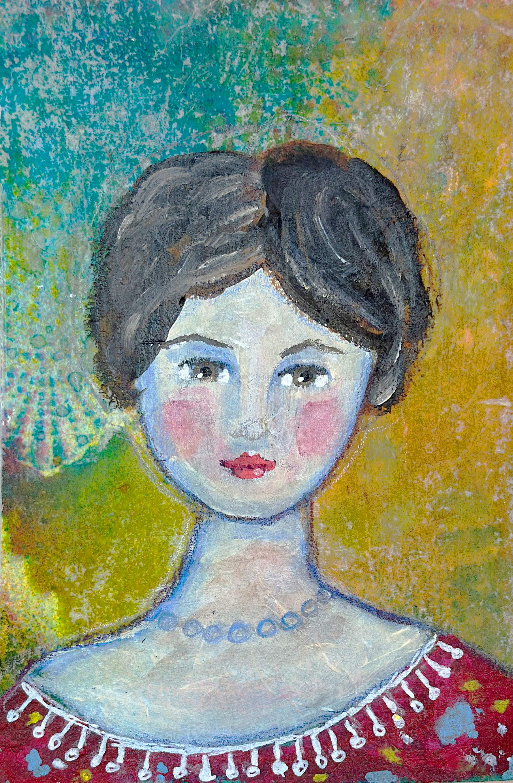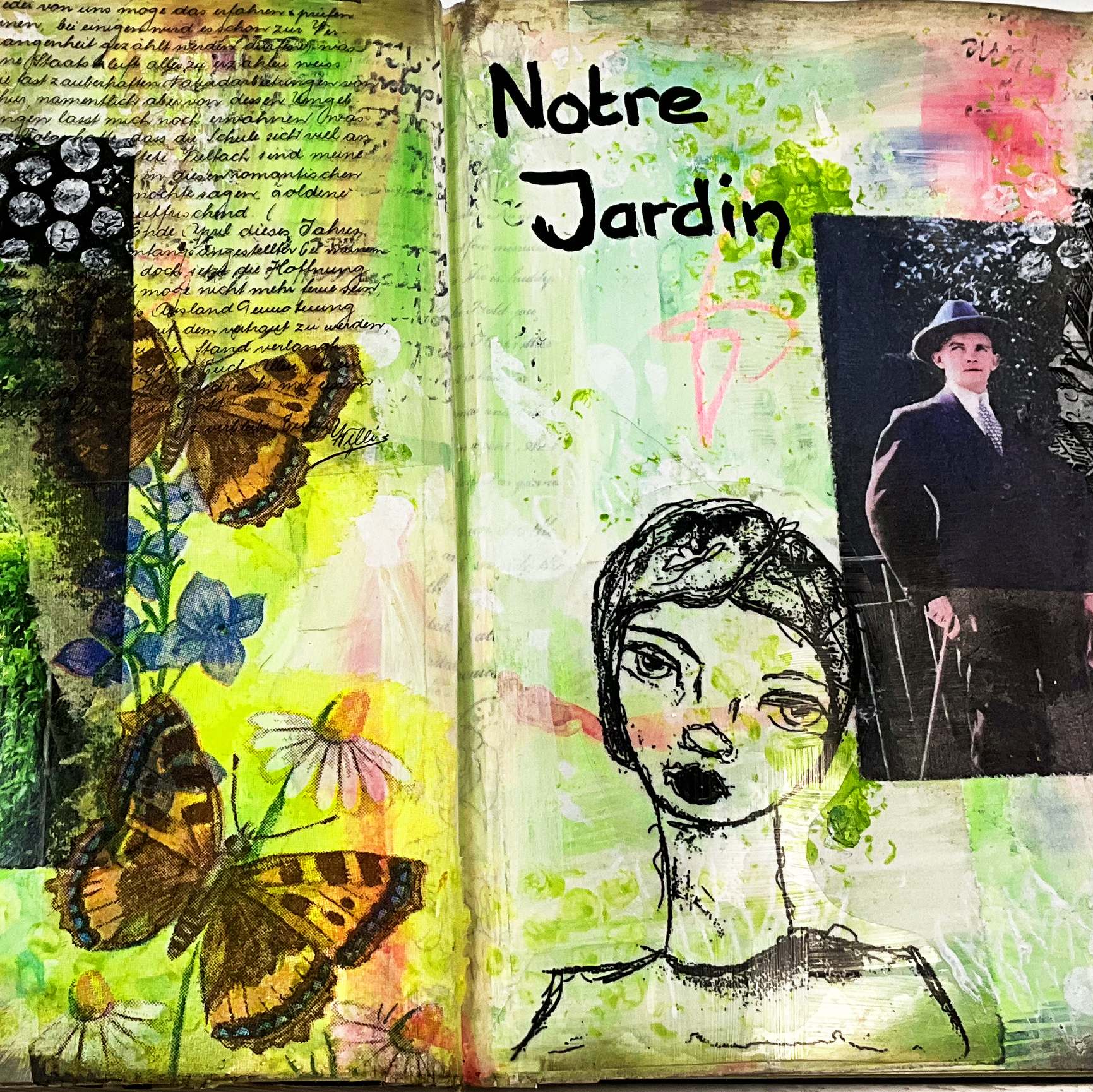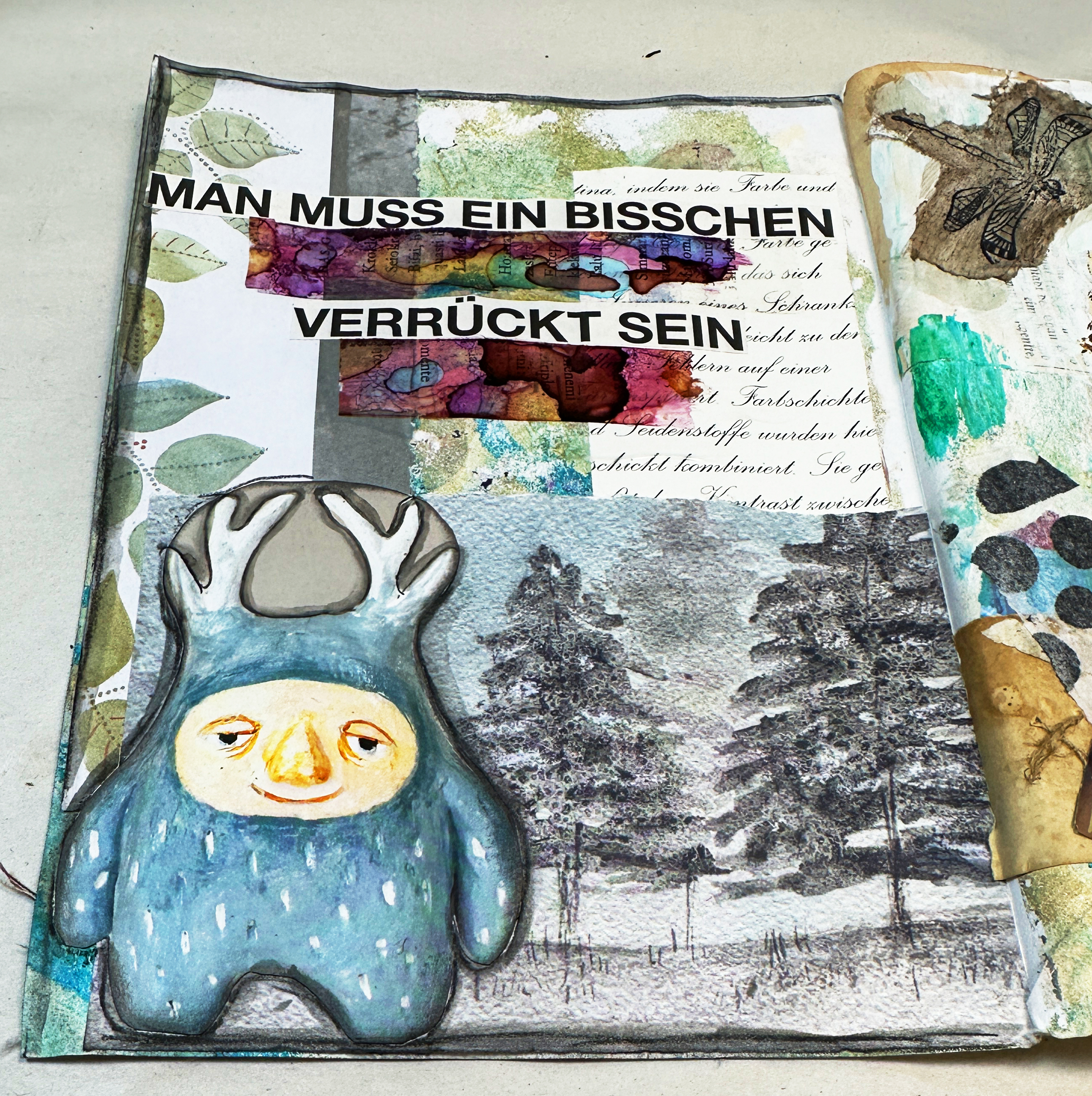 Expressive Art Journal: Hand-Painted Face, Pretty Papers, and Collaborative Journey with Lena