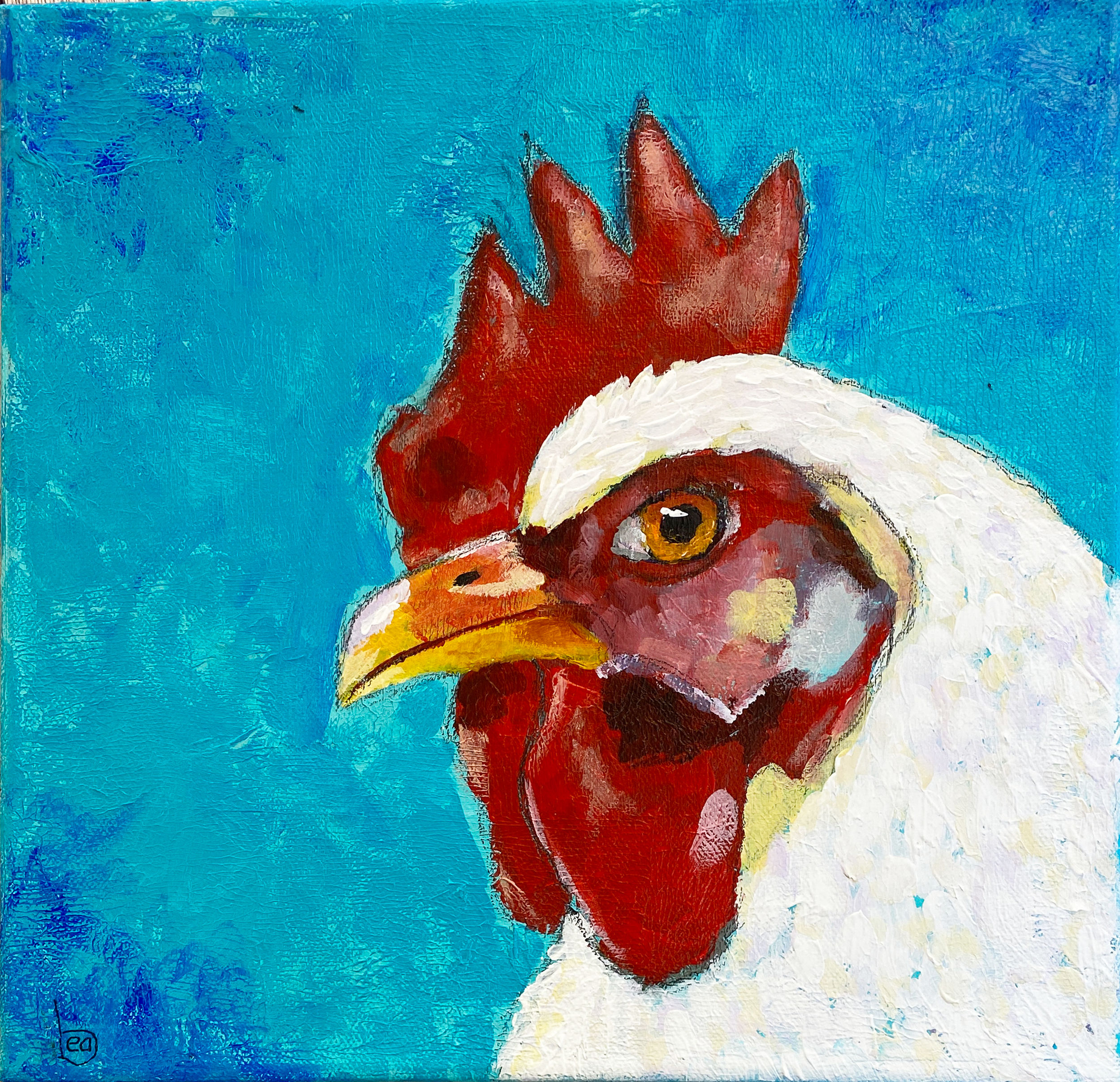 Painting a white rooster