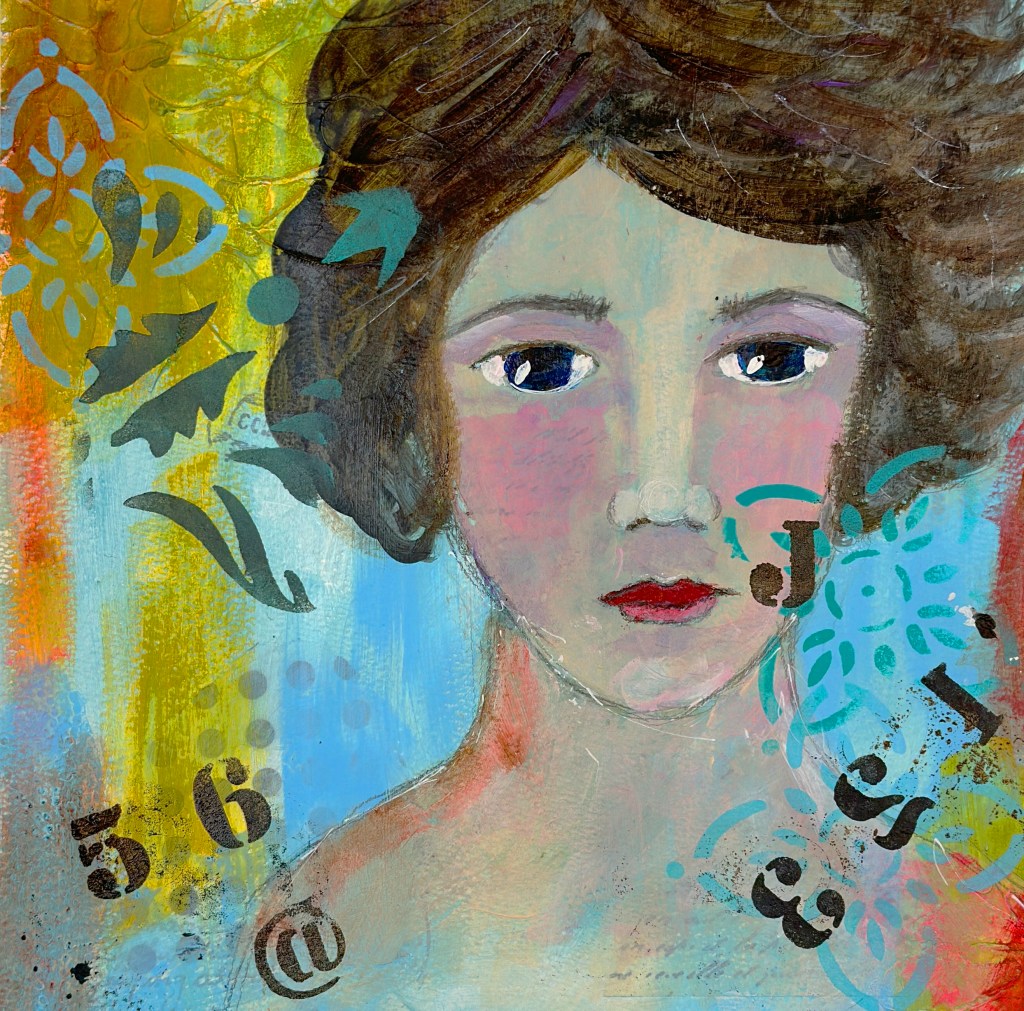 Ich werde euch auf dem Laufenden halten und wahrscheinlich auch den Prozess auf der Leinwand filmen. Also bleibt dran. Zurück zur Journal Seite. Nun zur Inspiration für dieses Gesicht: Es entspringt rein meiner Fantasie. Ich mache keine echten Porträts. Ich möchte eher eine Idee einfangen als eine bestimmte Person.
