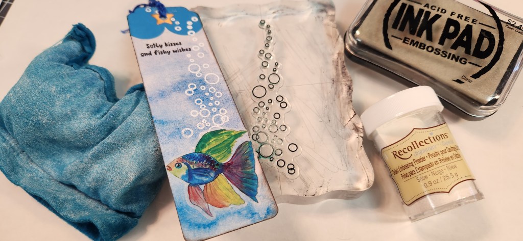 Für mehr Struktur verwendete sie Heißprägung mit einem Blasen-Stempel. Ein Tipp von Jamie: Benutze ein Anti-Statik-Tool. So bleibt das Prägepulver nicht an unerwünschten Stellen haften. Das ist etwas, das man leicht vergisst!